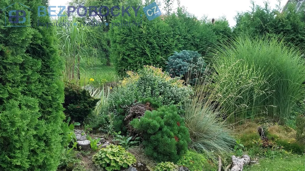 Součástí prodeje je udržovaný pozemek se zahradou, na které se nachází okrasná skalka, vzrostlé jabloně, švestka a další stromy. Na zahradě je také praktická bouda na nářadí.