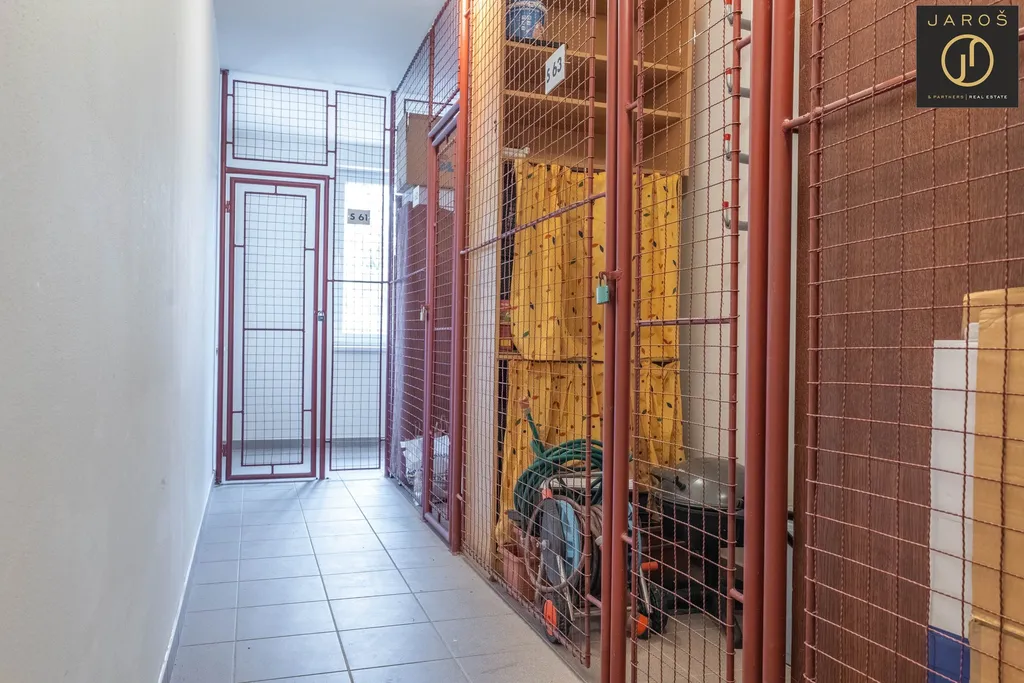 K bytu náleží parkovací stání v podzemní garáži, sklepní kóje na patře a praktická spižírna přímo v bytě. Byt nabízí velké množství úložných prostor.