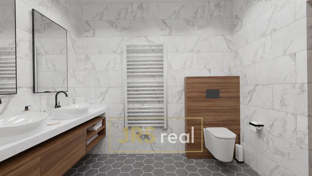 Velký důraz je kladen na moderní technologie a nízké provozní náklady. Dům je navržen jako energeticky úsporný s přípravou na instalaci fotovoltaické elektrárny (FVE). Součástí je také retenční nádrž na dešťovou vodu, kterou lze využít pro chod domácnosti i závlahu zahrady. Tepelné čerpadlo Buderus zajišťuje ohřev vody i teplovodní podlahové vytápění v celém domě, což oceníte v každém ročním období. Komfort bydlení dále zvyšuje rekuperace vzduchu a příprava na klimatizaci.