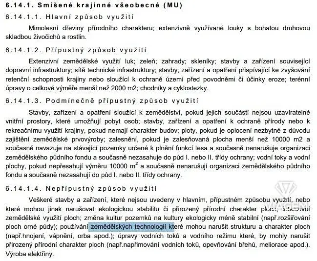 ➡️ Územním plánem označeno jako “MU - Smíšené krajinné všeobecné”.