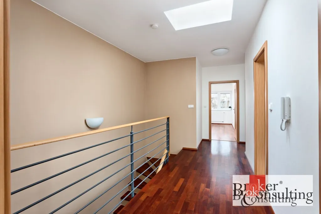 Po vstupu do domu na Vás dýchne dispozičně perfektně řešené přízemí s pracovnou/pokojem, obývacím pokojem, s výhledem na zahradu a prostornou moderní kuchyni. V přízemí najdeme koupelnu se sprchovým koutem a WC. Z kuchyně je vchod do velké garáže, která se nachází v podzemním podlaží. Garáž disponuje místností pro uloženích sezónního vybavení. II.NP má 3 prostorné pokoje, každý z nich má vlastní šatnu.