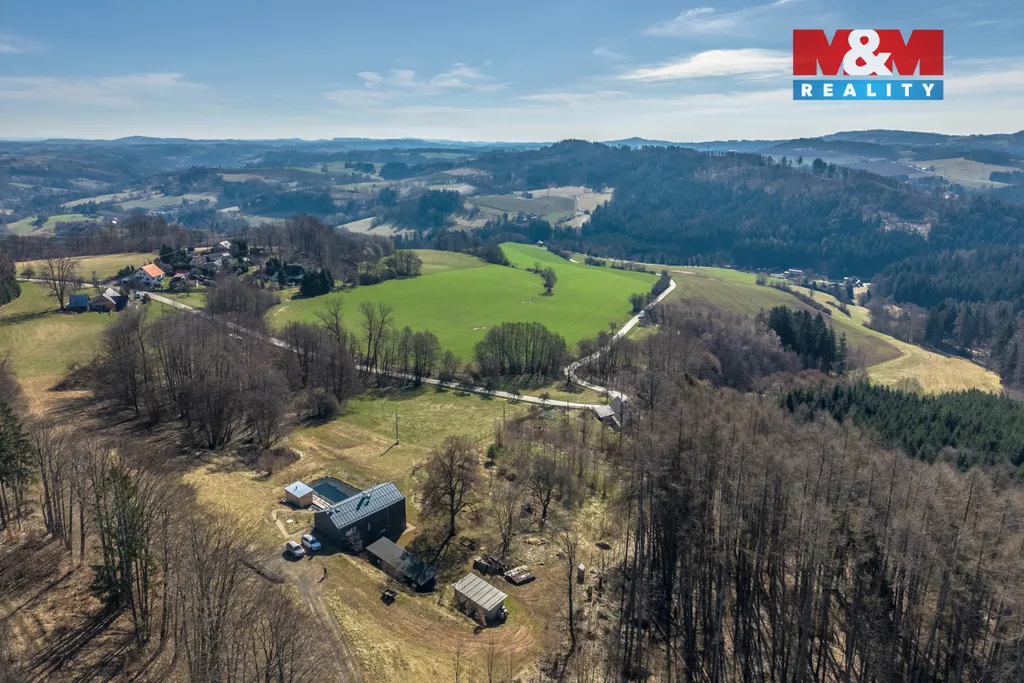 Nabízíme k prodeji novostavbu moderního domu na klíč s pozemky o celkové výměře 3.794 m2. Jedná se o jedinečný architektonický projekt vytvořen pro rodinnou rekreaci, ale lze jej užít také pro trvalé bydlení. Dominantou je celoprosklený štít s konstrukcí z masivních trámů. Při vstupu do domu se ocitnete v zádveří s prostorem na věšák, botník a velkou skříň. Hned za krátkou zástěnou se nachází kuchyň ve tvaru L. Naproti kuchyni je umístěna koupelna s toaletou, umyvadlem a sprchovým koutem. Druhou částí dolního patra domu je obývací pokoj s jídelnou a schodiště do horního patra. Z obývacího pokoje se dostanete na venkovní dřevěnou terasu, která může být zastřešená sluneční clonou. V podkroví jsou umístěny dvě ložnice. V samém středu domu je pak navrženo umístění krbových kamen, která dotvoří dokonalou atmosféru pro odpočinek a relaxaci. Cena obsahuje rozsáhlý pozemek a stavbu domu na klíč včetně stavebního povolení.