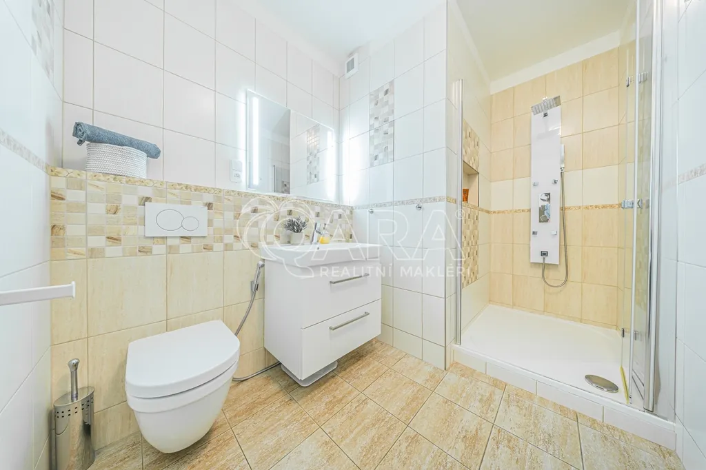 Velkou devizou je samostatná garáž v suterénu budovy. Nejde o klasické parkovací stání, ale o uzamykatelnou garáž, do které se kromě automobilu vejde také motorka, jízdní kola i další potřebné vybavení.