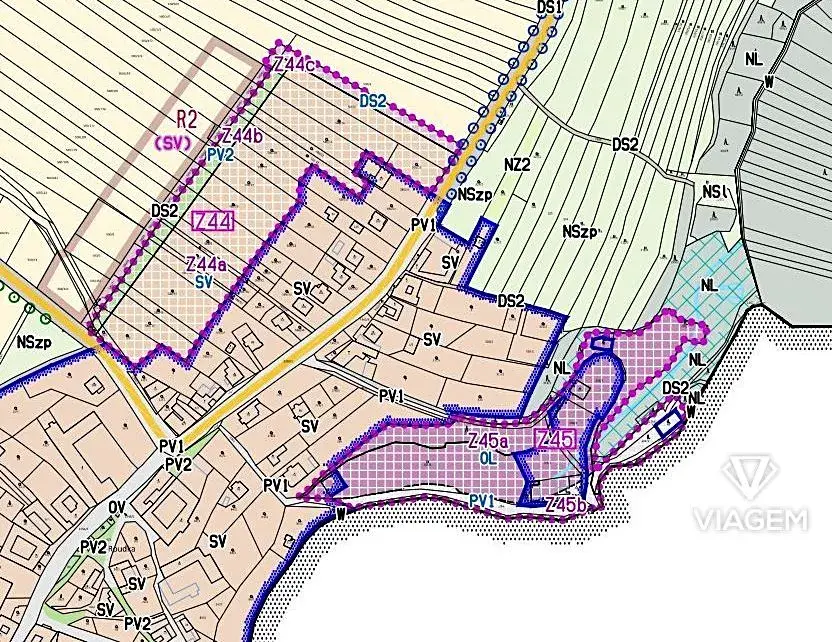 Přístup k pozemku je zajištěn polní cestou. Maximální výška budov: 1NP s podkrovím, výjimečně 2NP.