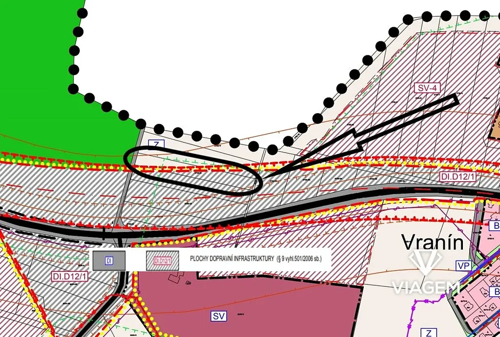 Jedná se o ornou půdu, kdy část pozemku (zhruba polovina) je v územním plánu vedena jako návrh pro komunikaci.