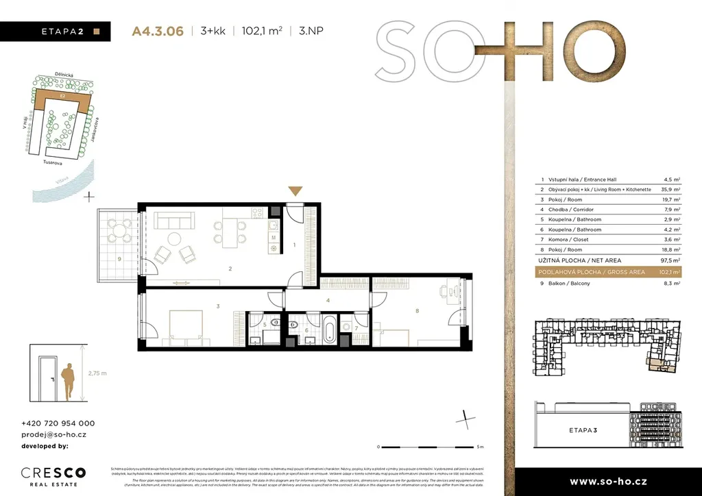 Více informací o tomto bytě, projektu a aktuální nabídce bytů z 2. etapy najdete na webových stránkách projektu. Rádi vás přivítáme také v našem prodejním centru: