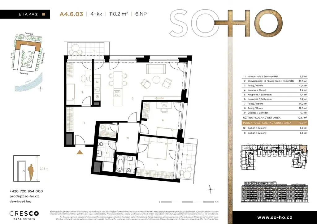 Více informací o tomto bytě, projektu a aktuální nabídce bytů z 2. etapy najdete na webových stránkách projektu. Rádi vás přivítáme také v našem prodejním centru: