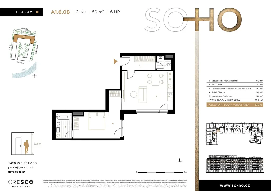 Více informací o tomto bytě, projektu a aktuální nabídce bytů z 2. etapy najdete na webových stránkách projektu. Rádi vás přivítáme také v našem prodejním centru: