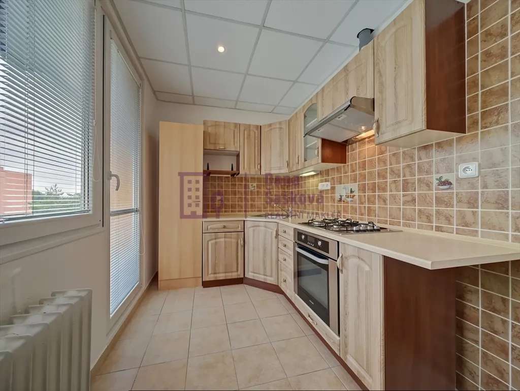 Dispozice bytu 2+1 s orientací na jihozápad nabízí předsíň, chodbu, kuchyni, obývací pokoj, ložnici, balkon, koupelnu se sprchovým koutem a toaletou. Kuchyně je vybavena linkou s plynovým sporákem, el. troubou a digestoří.