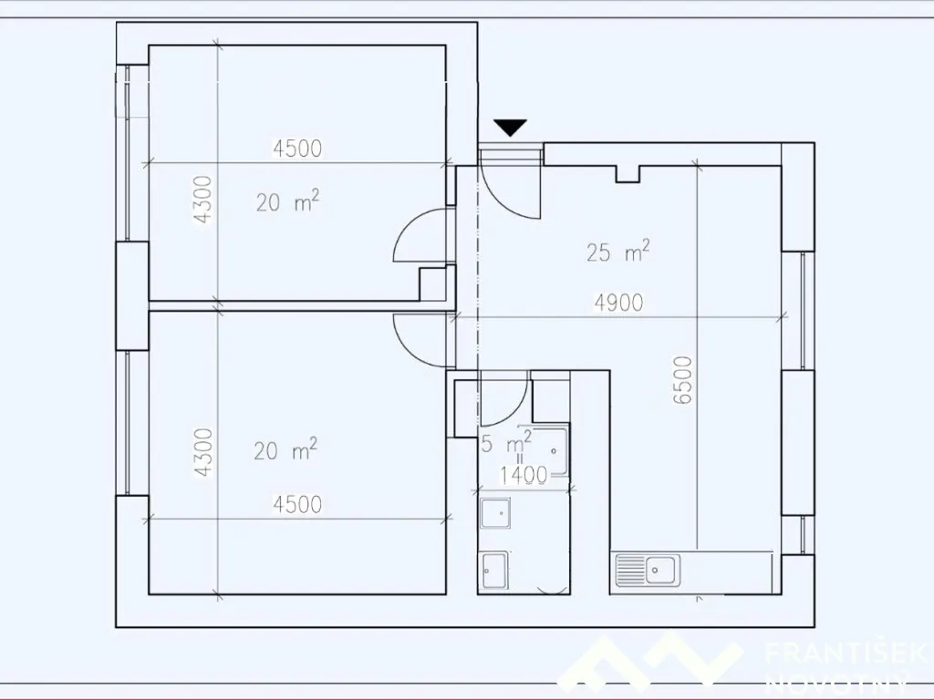 • obývací pokoj s kuchyňským koutem (cca 25 m²)