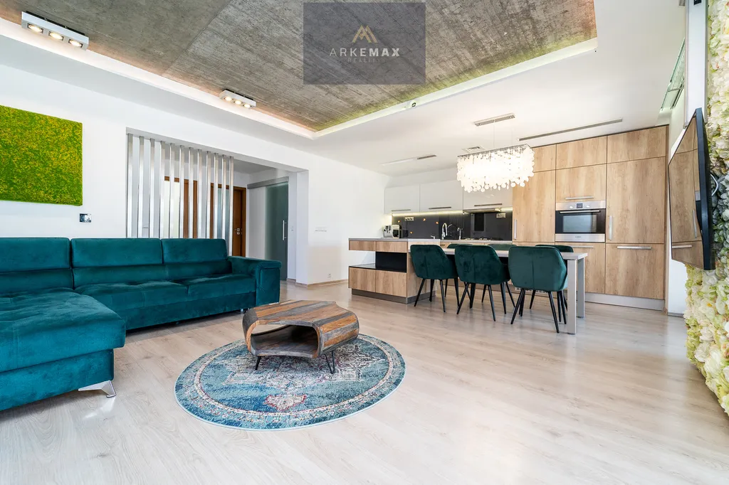 Dům nabízí promyšlené dispoziční řešení, které poskytuje dostatek soukromí i společného prostoru. Dominantou je prostorný obývací pokoj propojený s kuchyní a jídelnou, na který navazuje relaxační a wellness část domu.