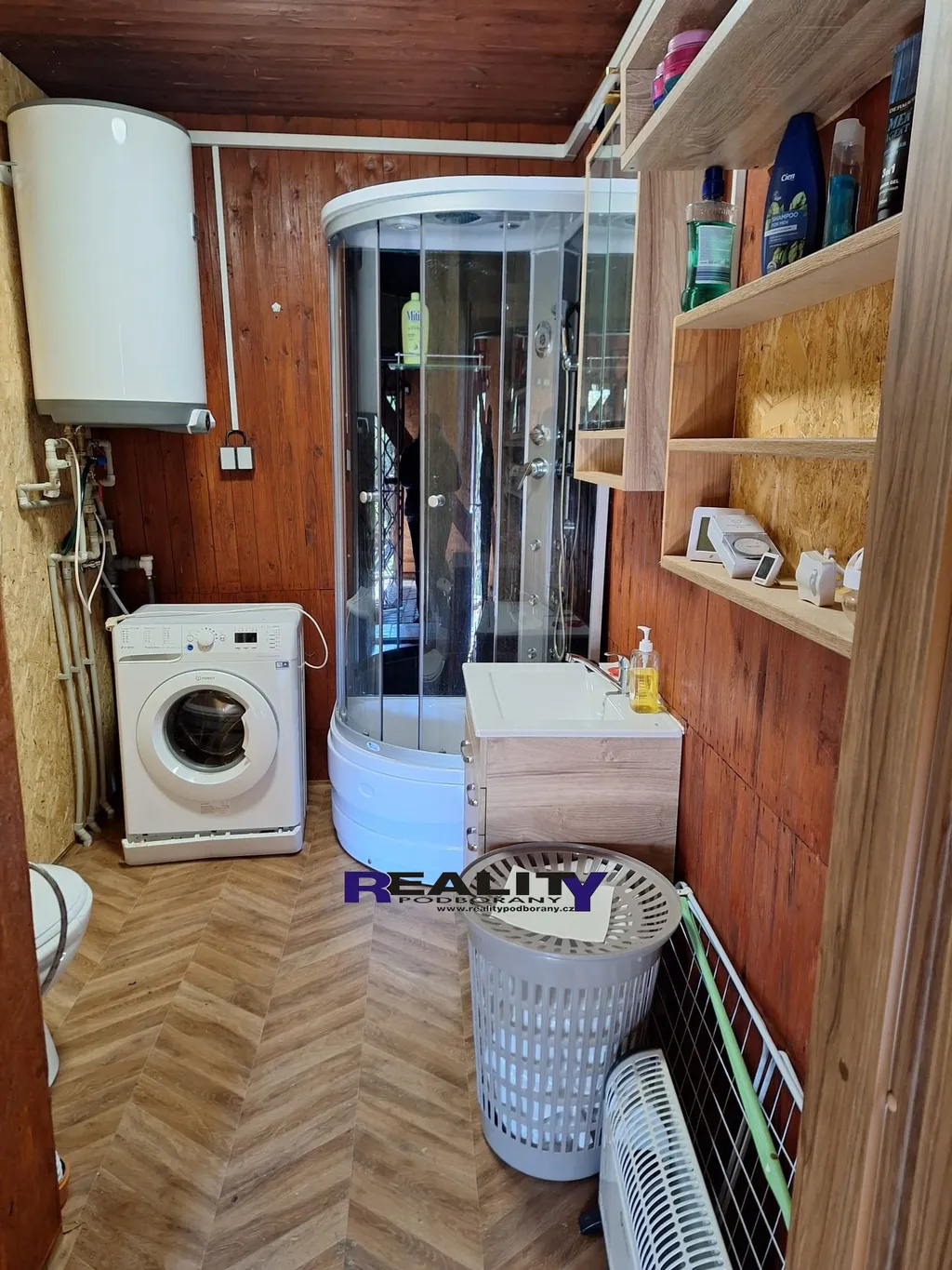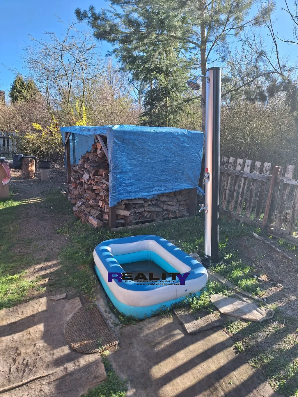 Nemovitost je napojena na všechny inženýrské sítě. Pitná voda je zajištěna z vodovodního řádu, užitková voda je z jímky 1,5m x 1,5m pod přístřeškem, dále je zde druhá jímka, která slouží jako podzemní nádrž pro odpad o objemu 6 m3, venku je zavedena elektřina 220 V i 380 V ( viz foto pilíř - antoníček ). Parkování přímo u domu, k dispozici je zakryté garážové stání pro auto, přístřešek na dřevo a venkovní zahradní sprcha. Příjezd autem z hlavní komunikace vede přímo k pozemku.