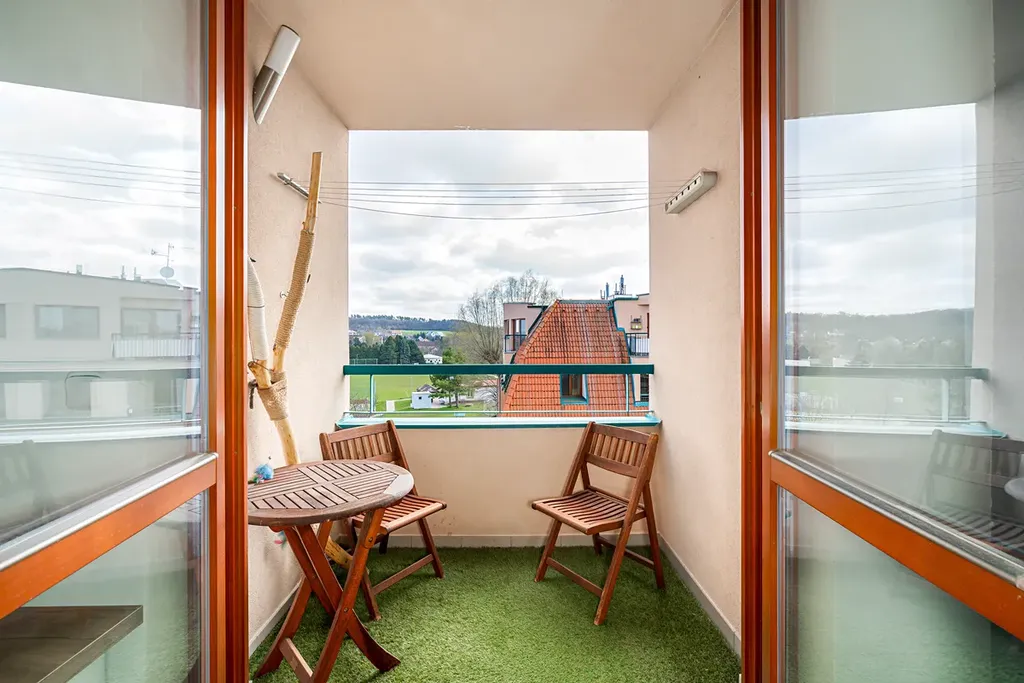 Lodžie s výhledem: Ideální místo pro ranní kávu nebo večerní relaxaci s krásným horizontem.