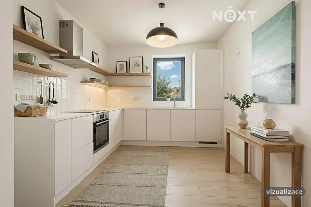 Dům je před kolaudací a čeká na dokončení interiéru podle představ nového majitele, což umožňuje individuální sladění designu a vybavení.