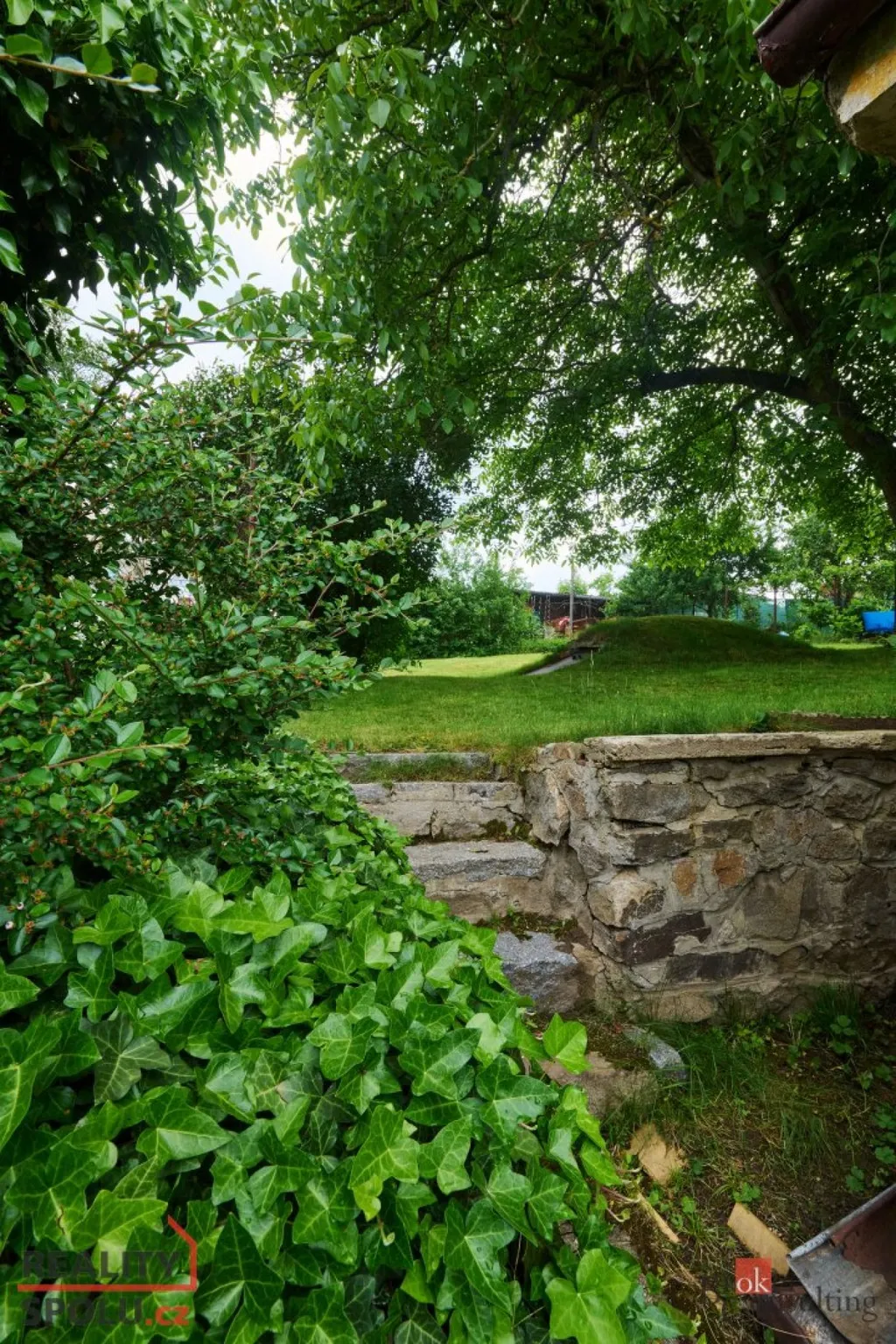 Na zahradě o velikosti 292 m2 je k dispozici podzemní sklípek – ideální pro uskladnění potravin či vína, a plechová garáž, která slouží jako úložný prostor pro zahradní náčiní a vybavení.