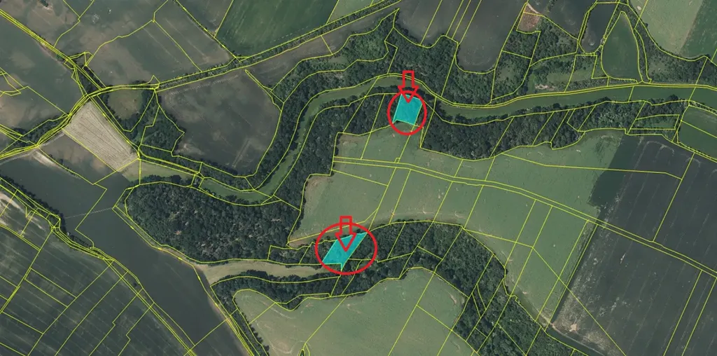 K pozemkům je příjezd ze spodní strany, částečně po polních cestách a částečně po louce.