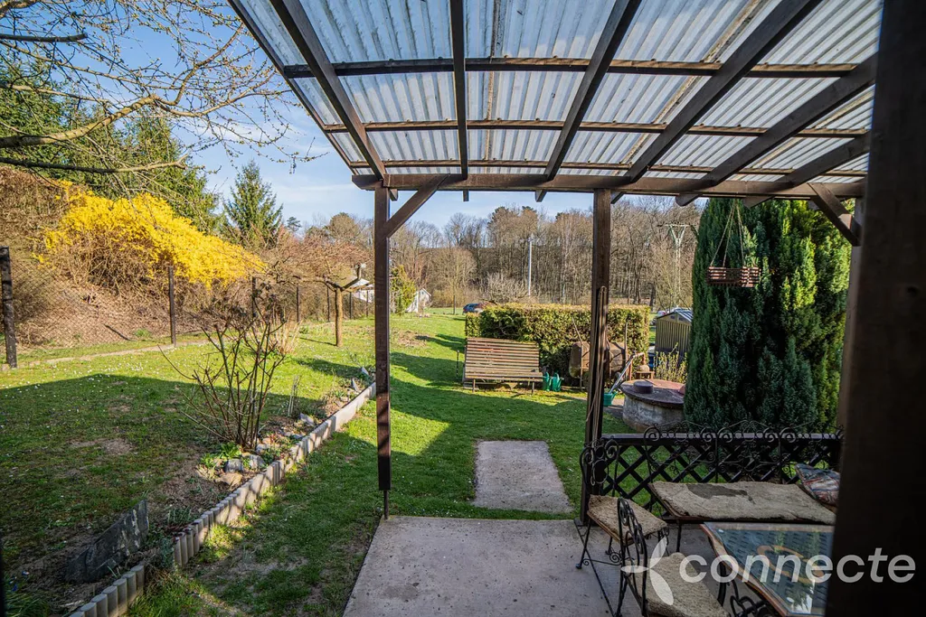 Chata nabízí obývací pokoj, menší kuchyňku a v patře ložnici. Z ložnice je vstup na balkon s výhledem do zahrady a na les na protější straně údolí. Příjemným bonusem je prostorná terasa a zastřešené posezení přímo před chatou.
