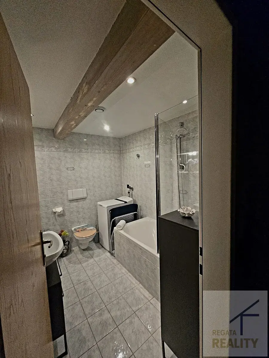 V rámci bytu je k dispozici koupelna s vanou, bidetem a samostatným WC, což splňuje požadavky na komfortní pobyt. Měsíční náklady na provoz bytu činí příjemných €300, což je výhodné vzhledem k lokalitě a vybavení. Byt je možné využívat ke krátkodobým pronájmům. Součástí je i parkovací místo.