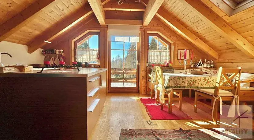 Nabízíme k prodeji bytovou jednotku v domě, který stojí v krásné krajině Nockberge na vyvýšeném a slunném místě v St. Oswald. Tento rustikální dřevěný dům se skládá ze dvou bytových jednotek a nachází se na pozemku 500 m² na vyvýšeném a slunném místě. v nadmořské výšce cca 1400 m n.m. Ke koupi je nádherný byt v nejvyšším patře se severní částí zahrady a zahradním domkem.