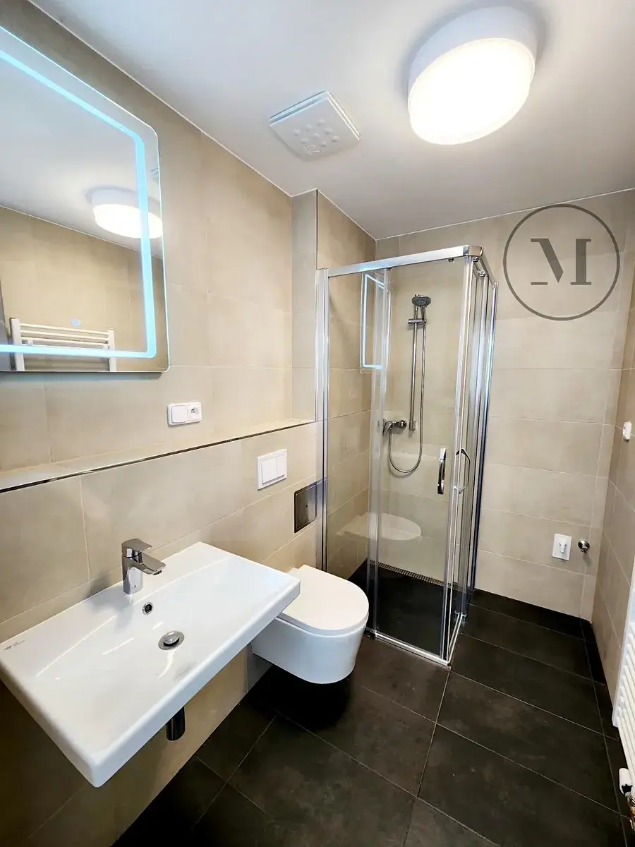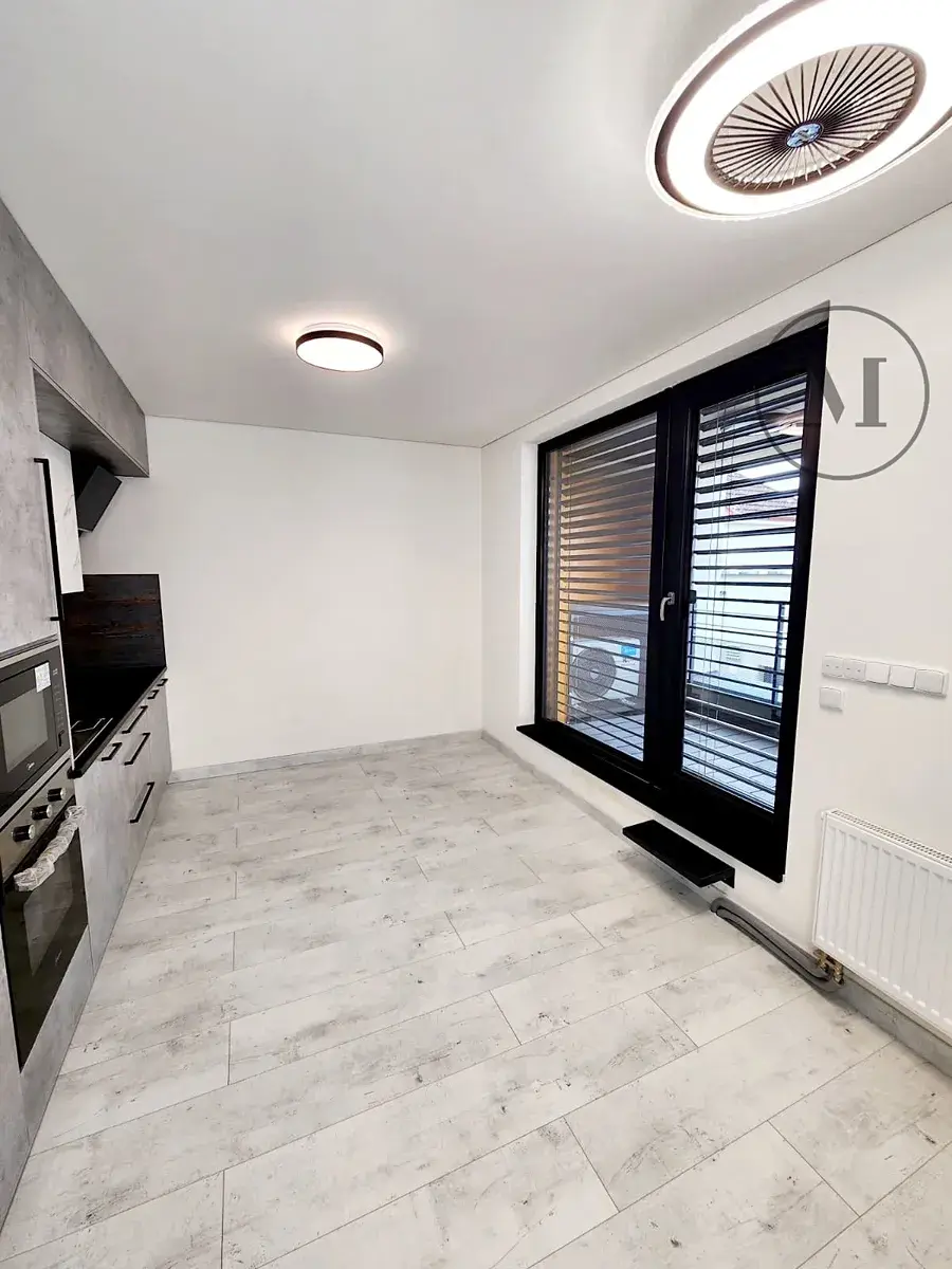 Tento byt disponuje celkovou plochou 37 m² a díky promyšlenému designu nabízí pohodlné a funkční uspořádání obytného prostoru. K bytu náleží také lodžie (4m²), která poskytuje příjemný prostor pro relaxaci nebo posezení u kávy. Podlahy jsou plovoucí laminátové a keramická dlažba. V koupelně je sprcha, závěsné WC, podlahové vytápění. Přípojka pračky je umístěná v koupelně. Dalším nadstandartním prvkem je úsporná klimatizační jednotka Midea určená taktéž k vytápění. Součástí světla v obývacím pokoji je ventilátor pro rychlejší vytopení/ochlazení místnosti. Kuchyňská linka je vybavena elektrickou sklokeramickou varnou deskou, vestavěnou troubou, mikrovlnou troubou, digestoří, lednicí a deskou pracovní plochy z přírodního kamene. Prostorná okna jsou osazena venkovními žaluziemi s elektrickým pohonem.
