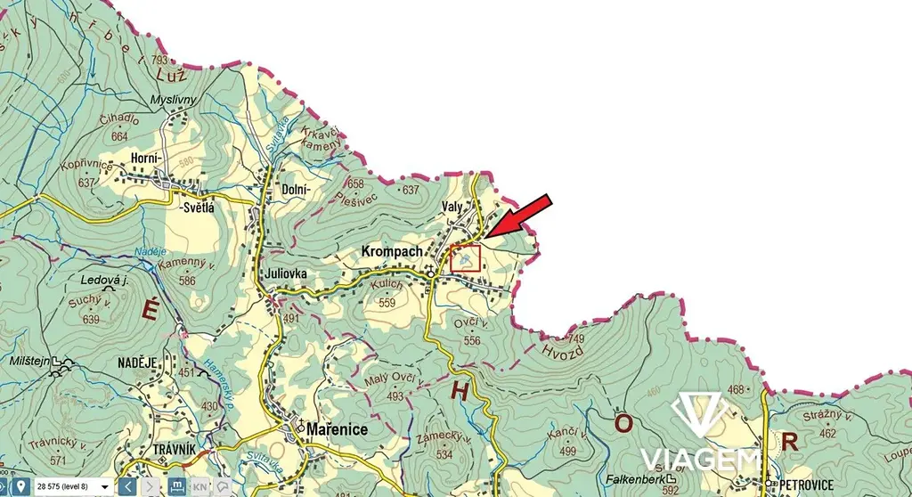 V exkluzivním zastoupení majitele nabízíme pozemek o výměře 7674 m2 v klidné okrajové části obce Krompach, okres Česká Lípa.