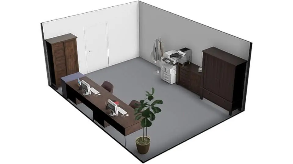 Celková plocha kanceláře činí cca 18,57 m².
