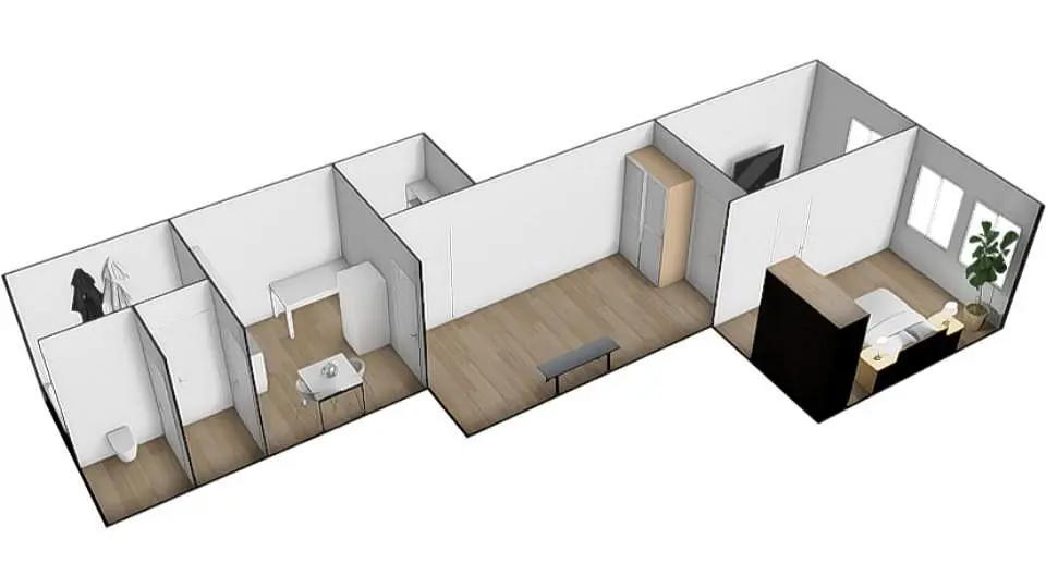 Druhý pokoj o velikosti cca 25 m and sup2; je vybaven pokojovou stěnou. V obou pokojích jsou položeny parkety, které působí velmi příjemným dojmem.