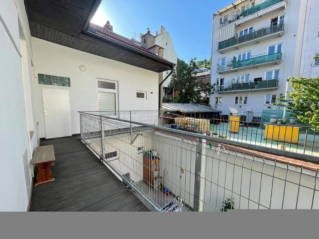 Z kuchyně se dále vstupuje na menší chodbu (cca 1,2 m and sup2;), ze které je přístup na samostatnou toaletu (cca 1,2 m and sup2;) a do koupelny o velikosti cca 5,5 m and sup2;. V koupelně se nachází vana, umyvadlo, zrcadlová skříňka, koupelnová skříňka, pračka a bojler pro ohřev vody.
