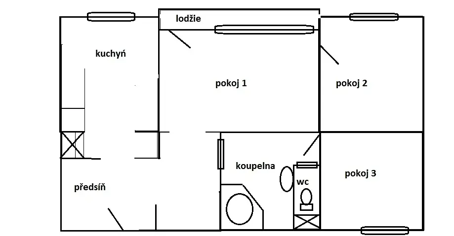 Byt má zvětšené vyzděné jádro s rohovou vanou, samostatné wc, nyní novou kuchyňskou linku a výmalbu, dále plastová okna a lodžii s výhledem do zeleně – na západ.