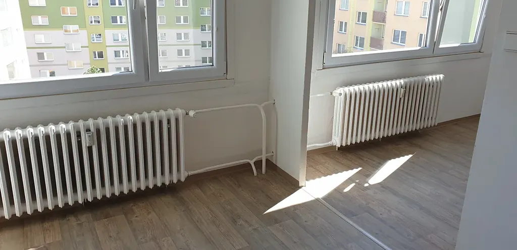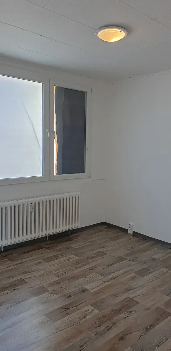 V pokojích jsou položeny nové vinylové podlahy, je bíle vymalováno a případné další přestavby a úpravy již můžete realizovat sami.