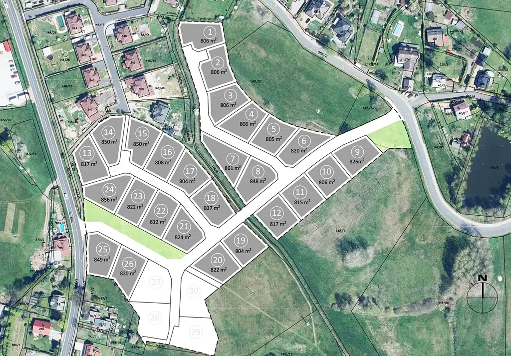 Na výběr je z 26 pozemků o výměře 806-856 m2. Více informací naleznete na webových stránkách projektu.