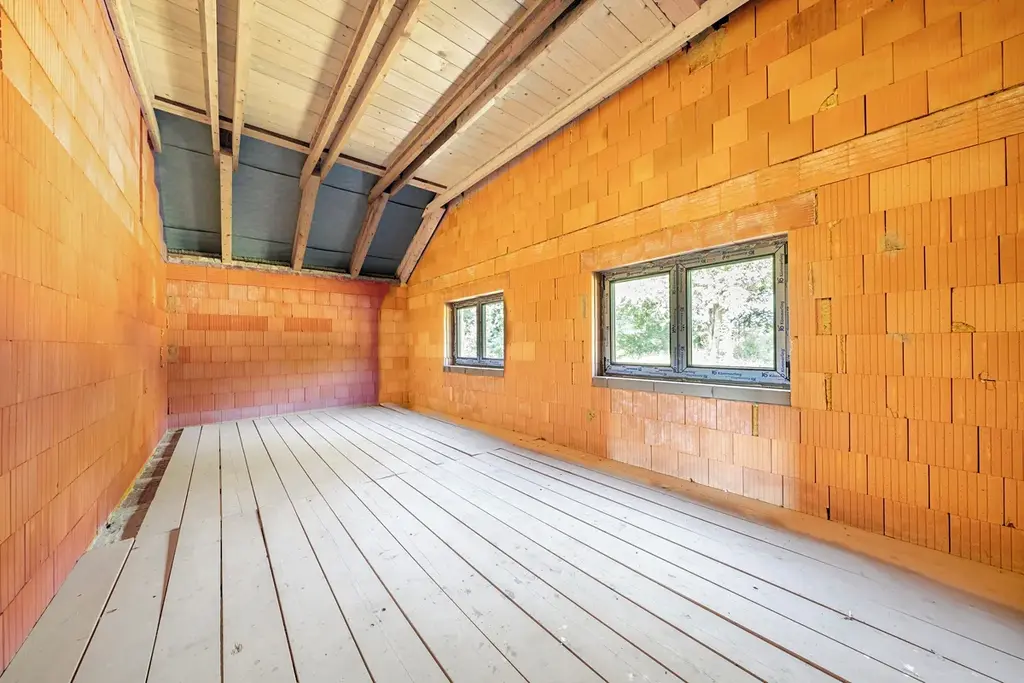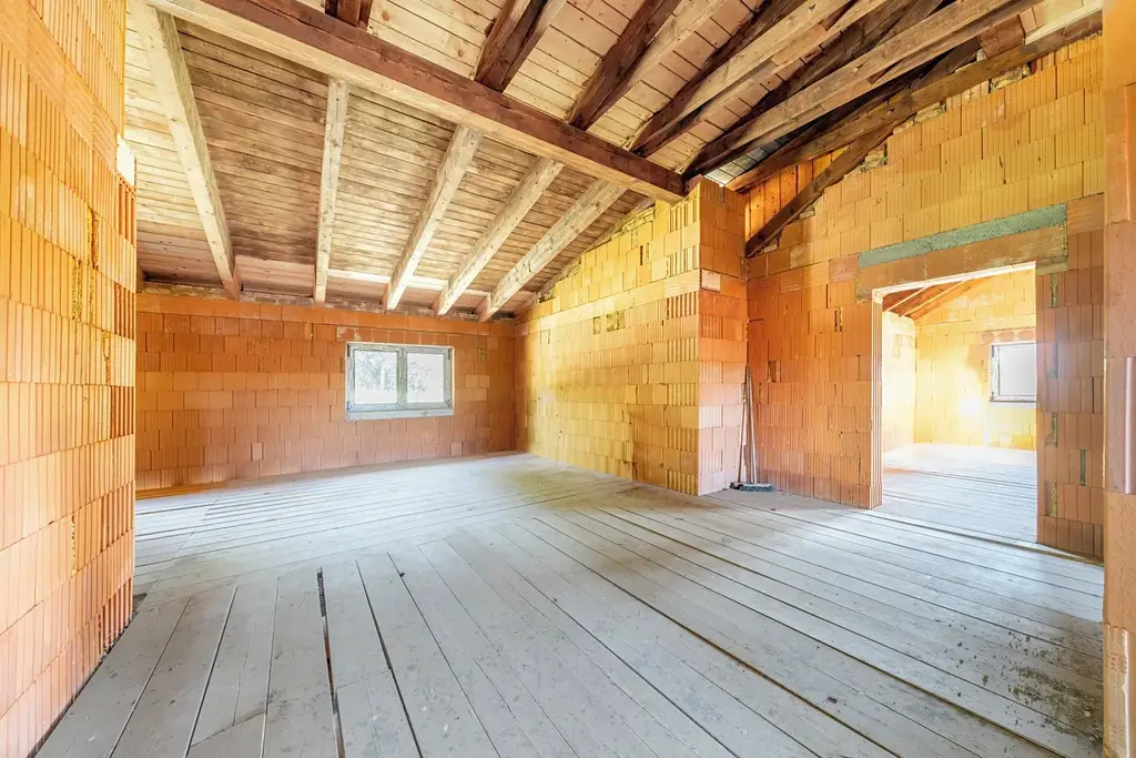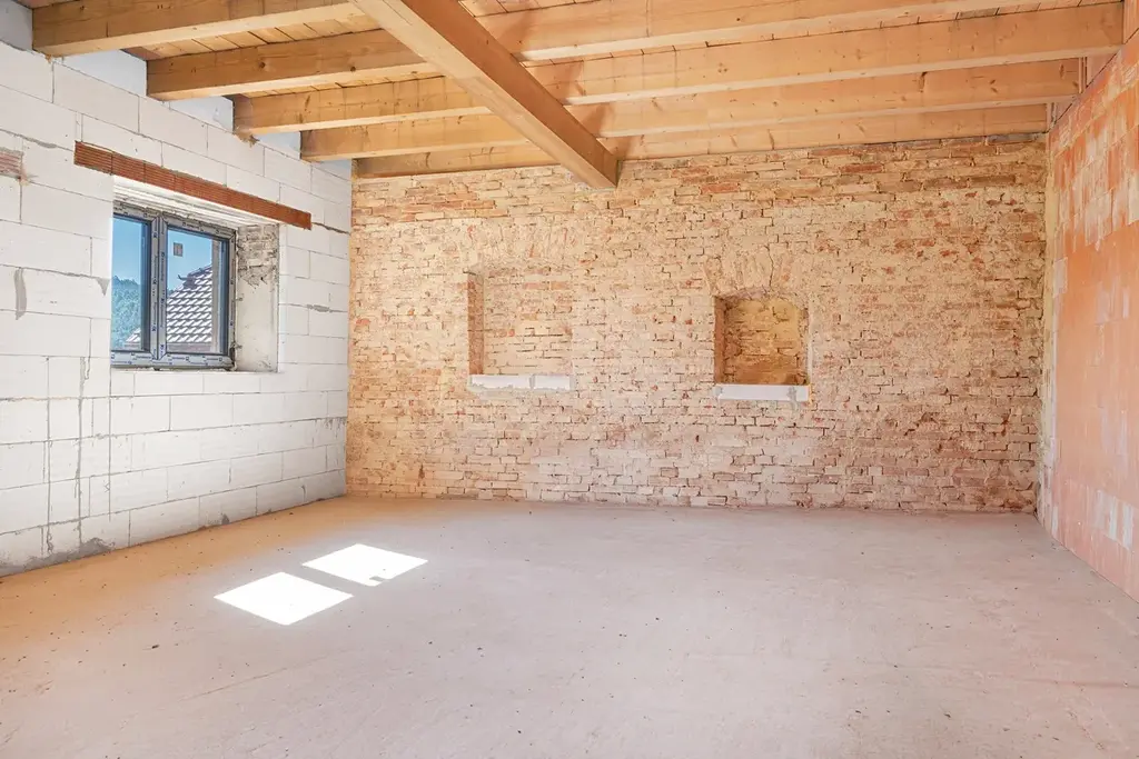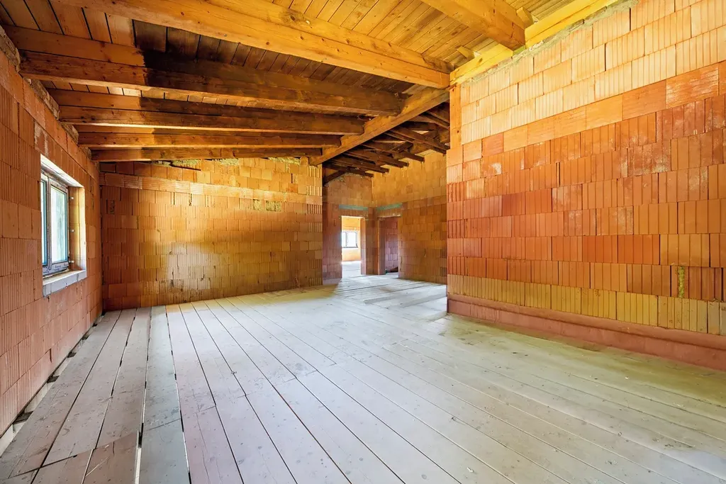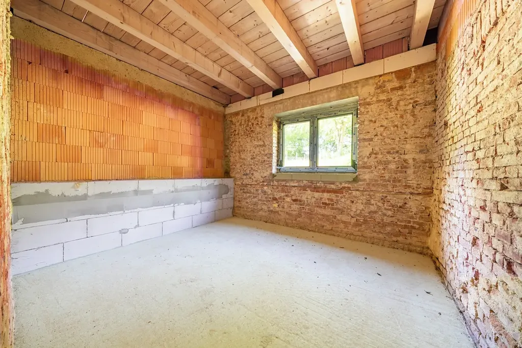 Dům má dvě nadzemní podlaží a sklep (cca 10 m²). Jsou zde již nová plastová okna a hotová střecha, ideální k dokončení dle vlastních představ.