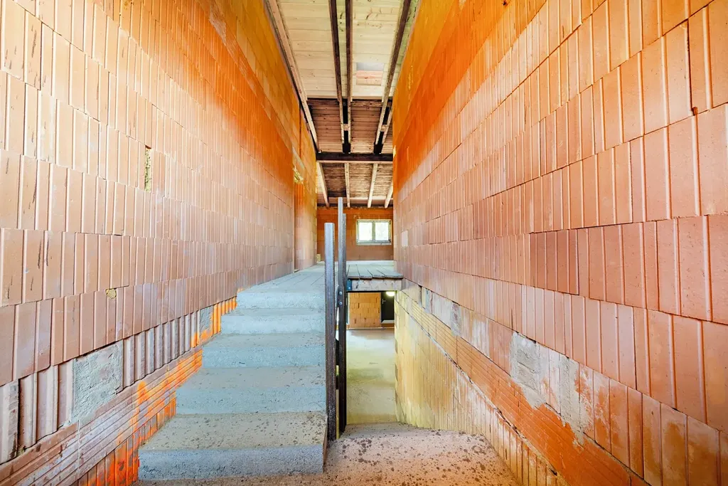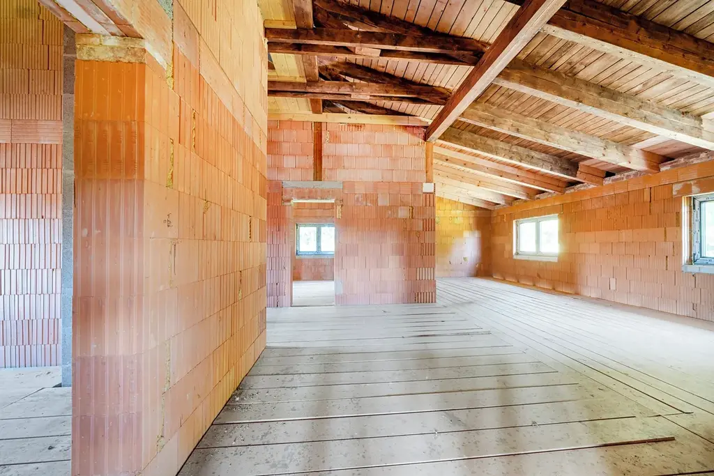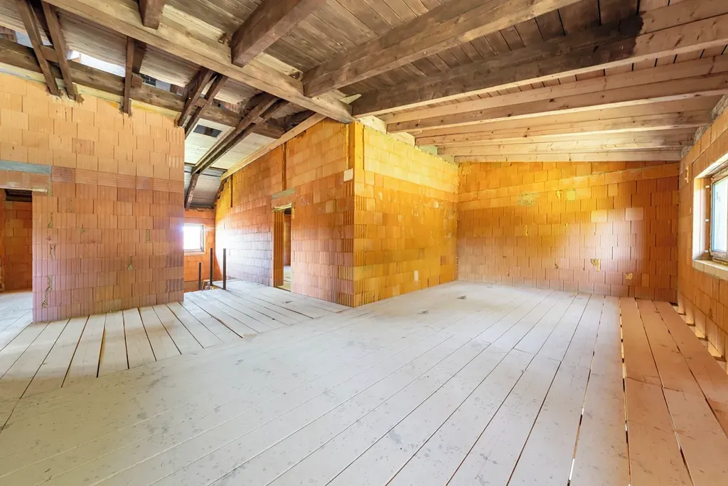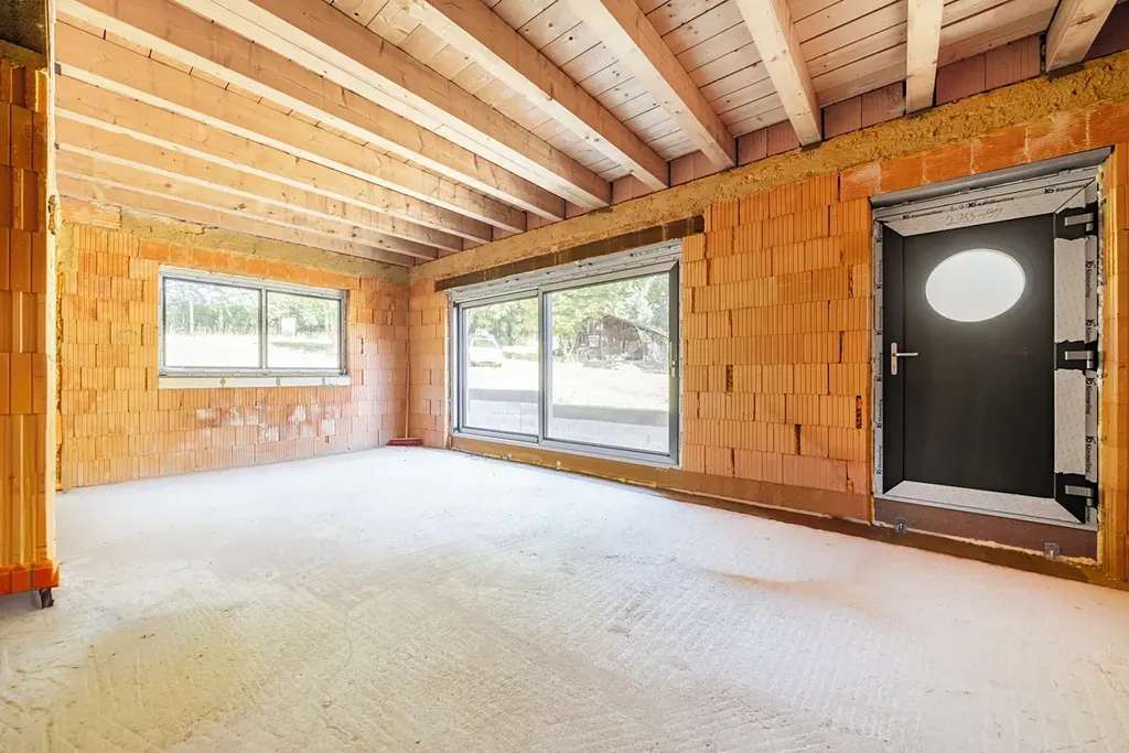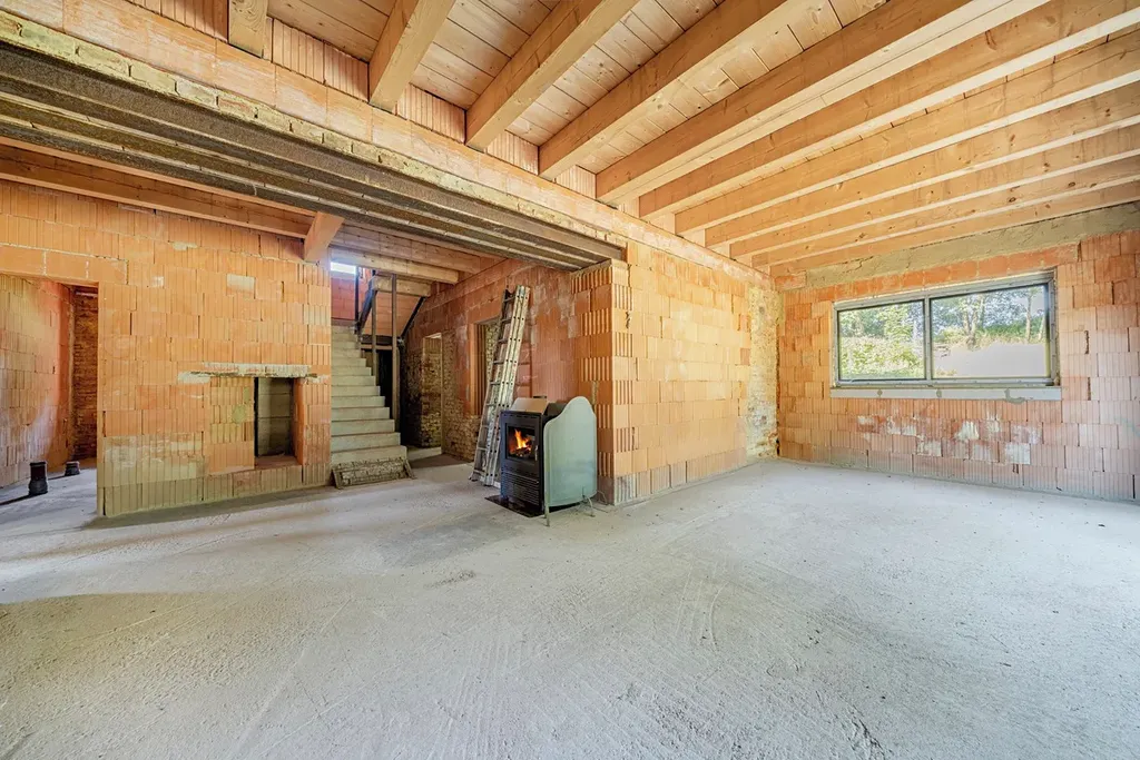 Dům má dvě nadzemní podlaží a sklep (cca 10 m²). Jsou zde již nová plastová okna a hotová střecha, ideální k dokončení dle vlastních představ.
