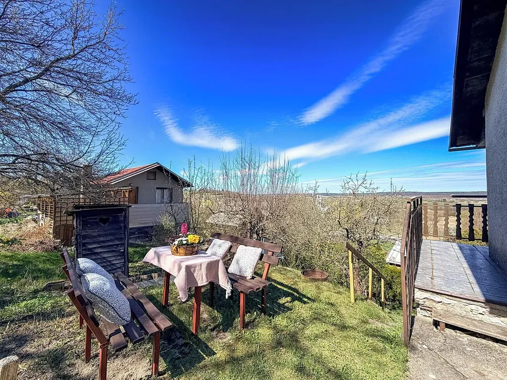 Na zahradě s výhledem do širokého okolí máte možnost relaxace a odpočinku, nebo se věnovat zahradnickým činnostem. Na pozemku jsou ovocné stromy a skleník.