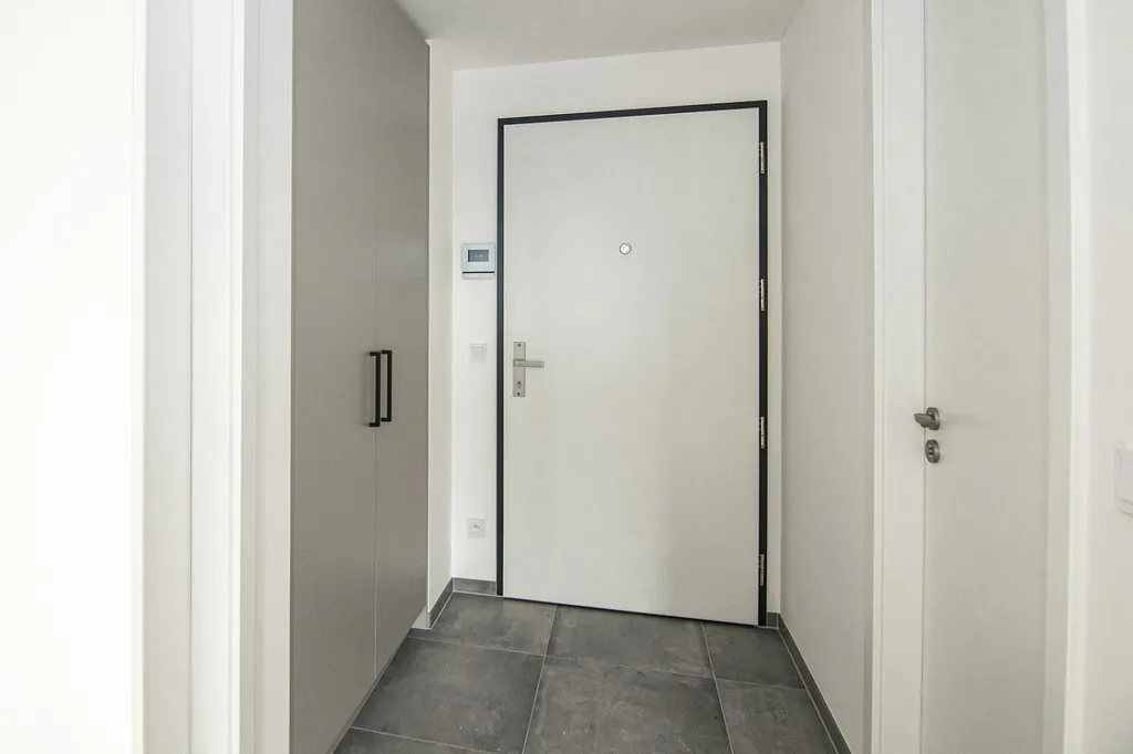 Byt je velmi vzdušný, prostorný a nabízí dostatek denního světla. Při vstupu se nachází předsíň s na míru vyrobenou šatní skříní. V celém bytě se aktuálně instalují stropní světla.