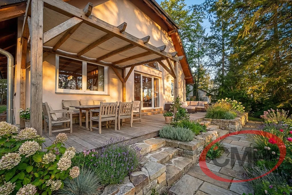 Nabízíme k prodeji jedinečnou nemovitost v klidné, vyhledávané lokalitě nedaleko Prahy, Malá Hraštice, okres Příbram obklopenou krásnou přírodou a vzrostlými stromy. Tento stylový, nadčasový objekt stojí na vlastním velkorysém pozemku o rozloze 4071 m2, který zajištuje soukromí a prostor pro relaxaci. Dominantou domu je vzdušný otevřený obytný prostor s vysokými stropy, dřevěnými prvky a galerií, která dodává interiéru jedinečný charakter. Velkoformátová okna a francouzské dveře krásně propojují interiér se zahradou a zajišťují dostatek přirozeného světla. V zadní části je samostatná prostorná ložnice se šatnou a vstupem na zahradu a koupelna s vanou, bidetem a WC. Z obývacího pokoje je vstup na terasu orientovanou do zeleně ideální pro posezení s rodinou či přáteli. Okolní lesy a příroda přímo vybízejí k procházkám, odpočinku i aktivnímu trávení volného času. Nemovitost představuje ideální kombinaci klidného bydlení nebo rekreaci v přírodě s dobrou dopravní dostupností do Prahy. Velkou výhodou je přímé spojení vlakem do Prahy na hlavní nádraží, busem, autem cca 30 - 40 min. Veškerá občanská vybavenost je v nedalekém Mníšku pod Brdy. Vřele doporučuji prohlídku.