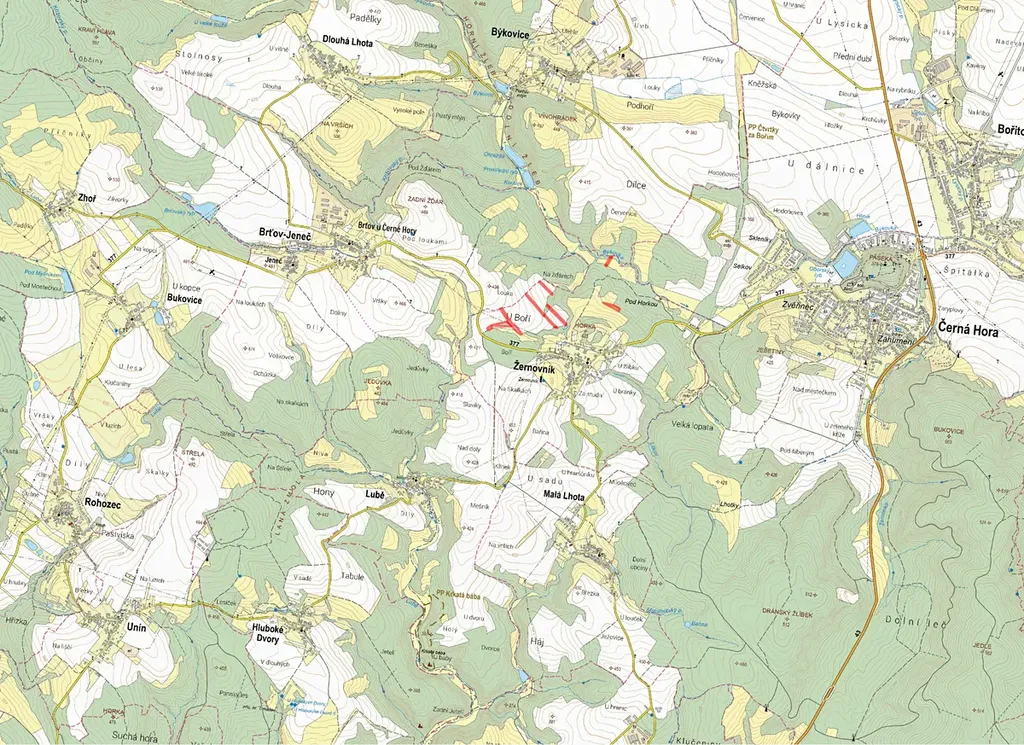 Žernovník u Černé Hory, celková výměra 23 029 m2, k prodeji je 5 757 m2.
