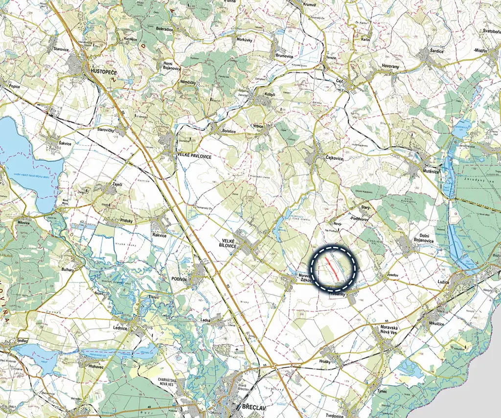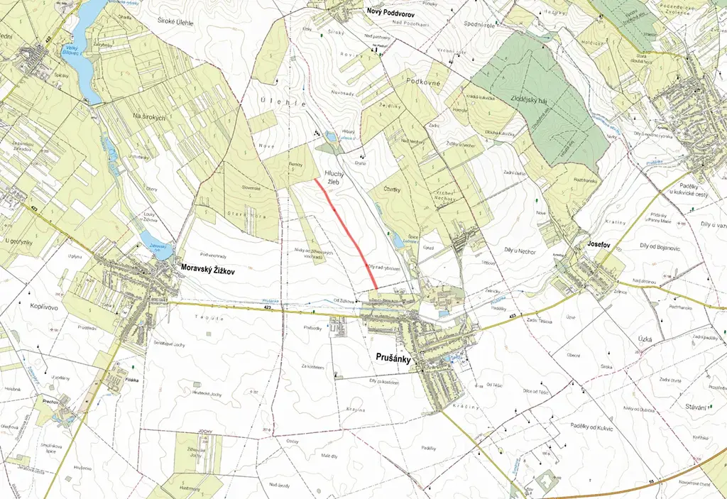 Prušánky, celková výměra 23 753 m2, výměra určená k prodeji je 11 877 m2: