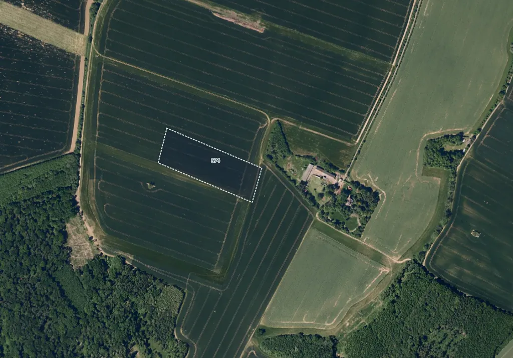 parc. č. 574 zapsaná na LV 25 v k.ú. Čechy o výměře 27 517 m², z toho výměra k prodeji činí 13 758 m²