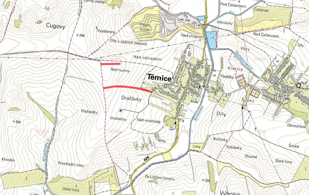 V k. ú. Těmice u Hodonína (LV 685) jsou k prodeji parcely č. 1046/15 a 1046/102 o výměře 6 993 m², vedené jako orná půda.