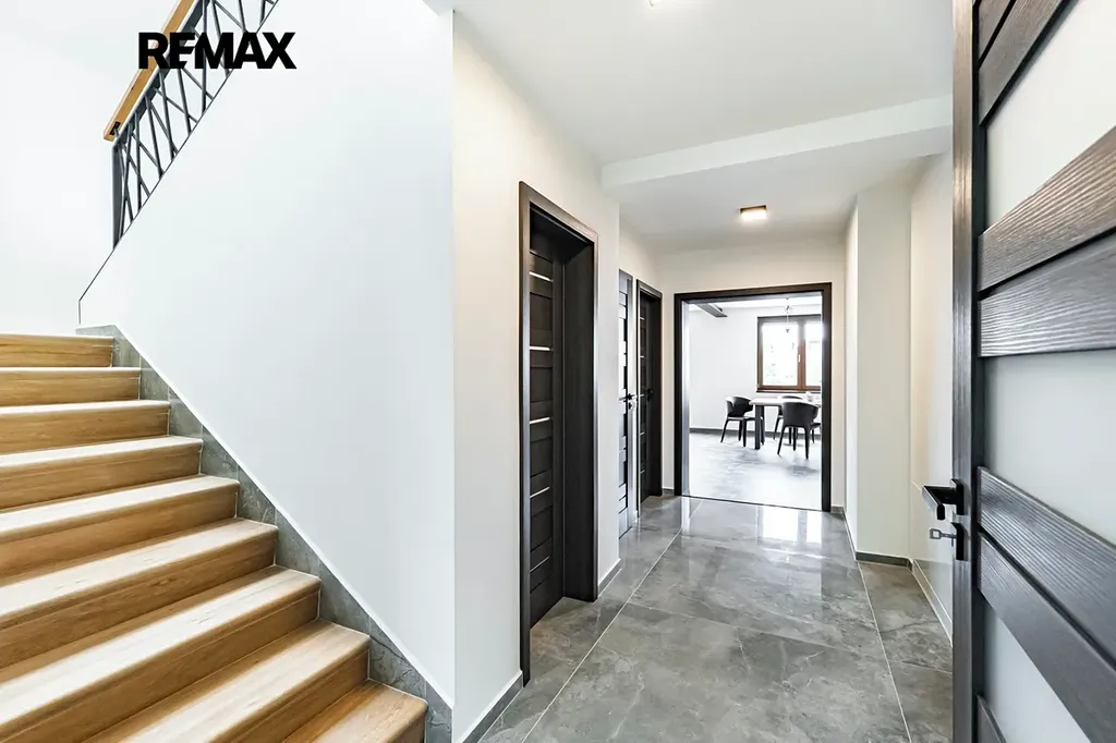 V patře se nachází další ložnice s balkonem, koupelna s vanou, praktický kumbál a tři další místností. V jedné z nich je navíc příprava na druhou kuchyni – ideální pro dvougenerační bydlení nebo při rozdělení domu na dvě bytové jednotky.