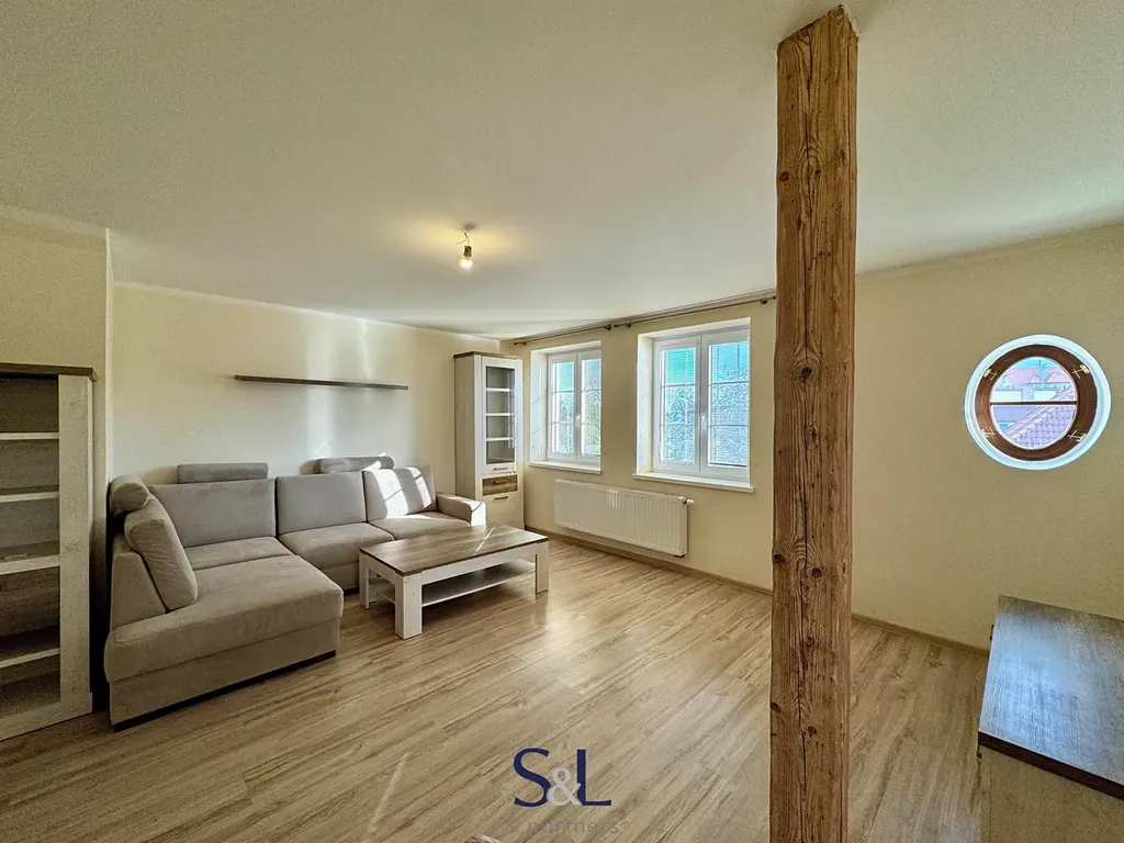 Bytová jednotka po kompletní rekonstrukci se nachází v podkroví ve 3. nadzemním podlaží v cihlovém domě. Byt nabízí dostatek prostoru a úložného místa. Je vybavený kuchyňskou linkou se sklokeramickou deskou, digestoří a s vestavěnými spotřebiči jako je elektrická trouba, myčka a lednice s mrazákem. Dále je byt vybavený manželskou postelí, vestavěnou šatní skříní, jídelním stolem se židlemi, rozkládací pohovkou, konferenčním stolkem a skříňkami.