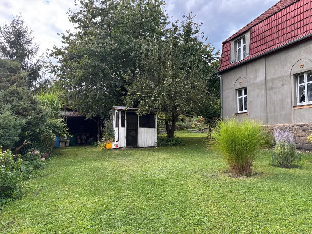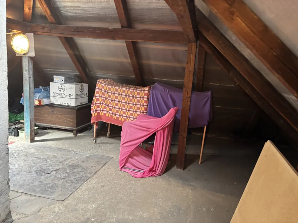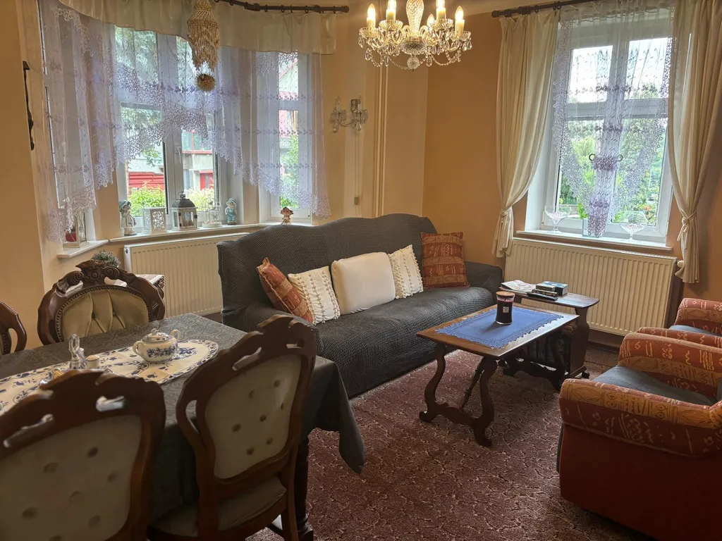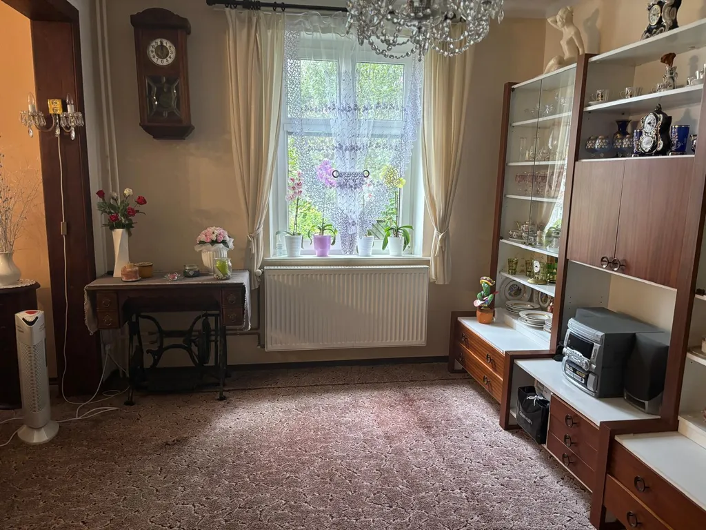 Co se týče samotného domu: V 1 NP domu se nachází veranda, chodba a vstup do velkého obývacího pokoje s arkýřem. Dříve byl pokoj rozdělen do dvou pokojů. Krásný výhled do zahrady. Vedle je malá kuchyně, koupelna a samostatné WC a dolů směr sklep, nahoru do patra, kde se nacházejí tři pokoje. Jeden pokoj plně samostatný, dva pokoje průchozí s krásným vestavěným krbem a v jednom zadním pokojíku je balkonek. Dále je zde WC a příprava na sprchový kout. Nahoru vstup na suchou čistou půdu. U domu je i rampa pro lidi s omezenou hybností. Je potřeba opravit.