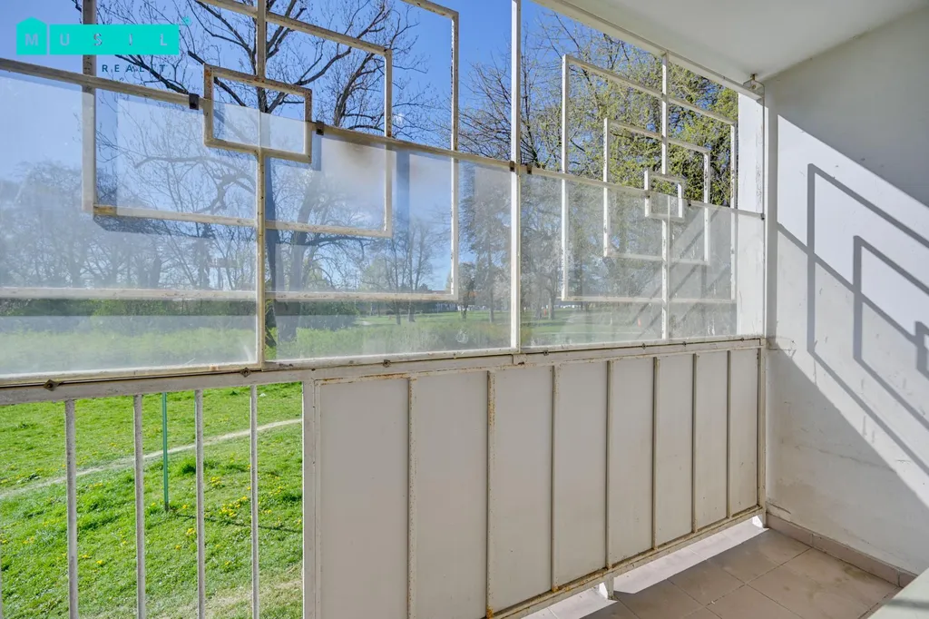 Součástí bytu je balkon orientovaný na jih, která je pro větší bezpečnost opatřena mříží. K dispozici je také sklepní kóje.