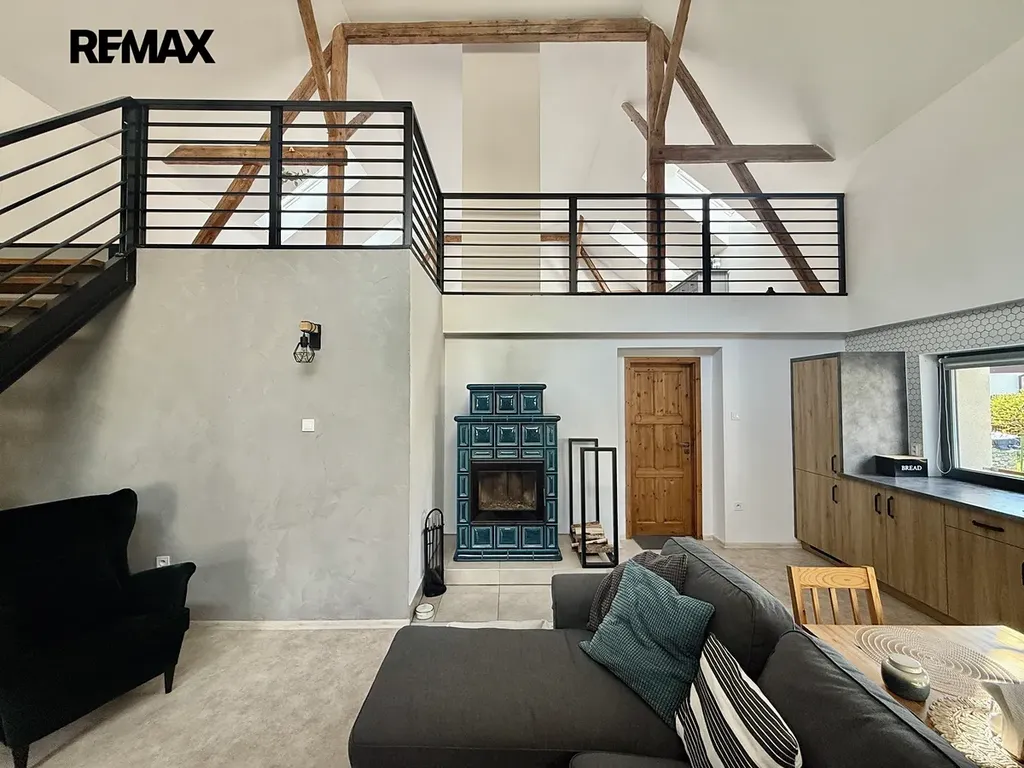 Součástí je také garáž (stodola), která nabízí variabilní využití – ať už pro parkování, uskladnění dřeva nebo jako dílna.