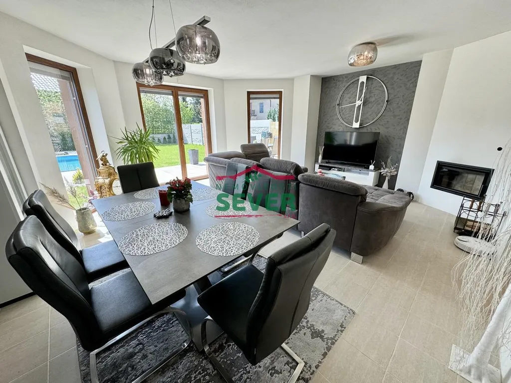 Nemovitosti SEVER vám zprostředkují koupi novostavby dvoupodlažního rodinného domu s dispozicí 7+kk s garáží v Praze, ve vyhledávané a lukrativní lokalitě Újezd nad Lesy, ul. Novosibřinská. Rodinný dům se skládá z předsíně, ze které lze vstoupit do pracovny, společně řešené koupelny s toaletou a chodby. Z chodby lze vejít do obývacího pokoje spojeného s jídelnou, kuchyňským koutem a také přímým vstupem do zahrady. V chodbě je k dispozici schodiště do patra a komora pod schody. V patře domu nalezneme čtyři ložnice, prostornou šatnu a hlavní koupelnu, ve které je k dispozici toaleta, vana a také sprchový kout. Dvě ložnice disponují vlastním balkónem. Dále je zde vstup do podkroví, které lze využít jako úložný prostor. V přízemí domu je podlaha vytápěná, v patře domu je topení ústředně rozvedené a k dispozici je také zabudovaný krb v obývacím pokoji. Moderní kuchyňská linka disponuje vestavěnými spotřebiči šestého smyslu od značky Whirlpool. Dům je zateplený a vybavený izolačními okny s trojskly a elektrickými, dálkově ovládanými žaluziemi. V domě je zabudovaný zabezpečovací systém značky Jablotron, kamerový systém a na střeše je nainstalována anténa značky O2, ze které vedou datové kabely do každé místnosti. Součástí domu je garáž s elektrickými sekčními vraty a kompletně oplocená, rovinatá zahrada s výměrou 458 metrů čtverečních. Součástí zahrady je terasa, o rozloze 45 metrů čtverečních, a bazén se slanou vodou a protiproudem. Vjezd na pozemek je zajištěný přes dálkově ovládanou dvoukřídlou bránu. Veškerou občanskou vybavenost vč. obchodů, lékaře, školy a školky nalezneme v blízkém dosahu. Doprava v okolí je dobře dostupná, zahrnuje vlak, MHD a dálnici. Výborná dostupnost do centra města. V roce 2027 by měl být vybudován dálniční obchvat. V případě zájmu zajistíme optimální variantu financování na tuto nemovitost za zvýhodněných podmínek pro naše klienty.