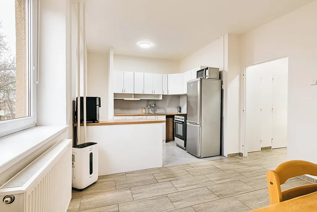 Byt prošel nedávnou rekonstrukcí (dlažba v místnosti s kuchyňskou linkou, částečně nová elektřina v rámci rekonstrukce, omítky, kuchyňská linka včetně spotřebičů, obklady v koupelně, plastová okna), je velice prostorný a dispozičně prakticky řešený, náklady na provoz jsou nízké. Jedná se o klidnou část a lokalitu s bezproblémovou dostupností,.
