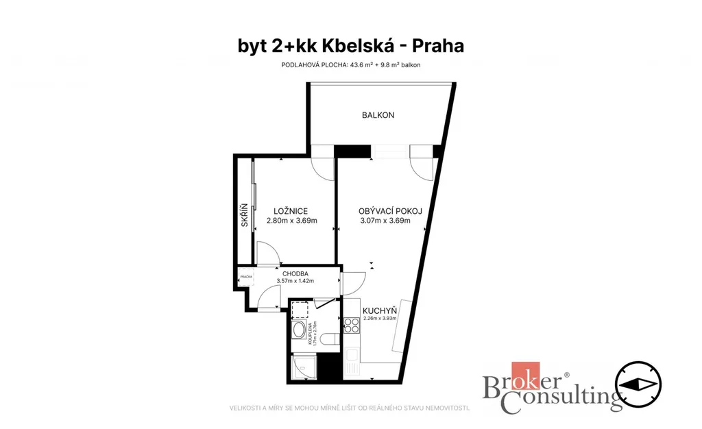 Nabízíme k pronájmu moderní a plně vybavený byt o dispozici 2+kk v atraktivní lokalitě Praha 9 – Hloubětín, konkrétně v ulici Kbelská. Byt se nachází ve 2. patře novostavby z roku 2022 a jeho celková podlahová plocha činí 45 m², k čemuž navíc náleží prostorná lodžie o velikosti 10 m².