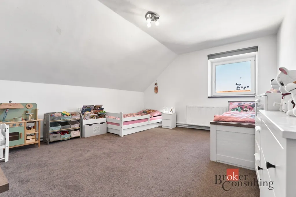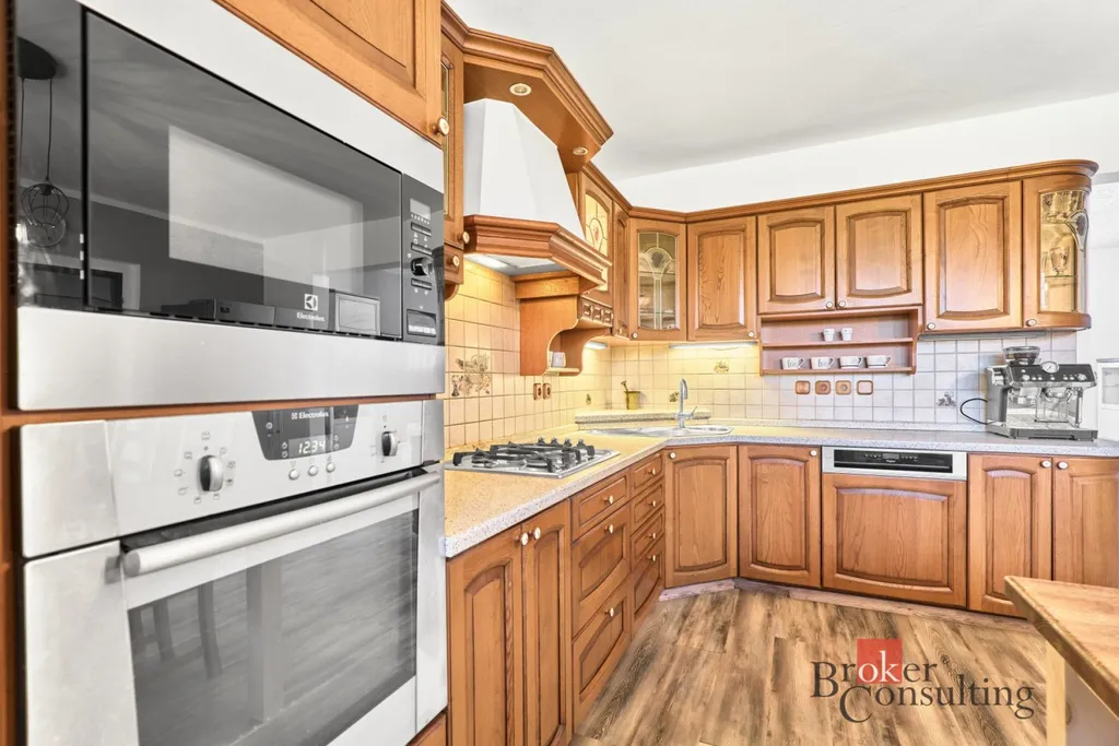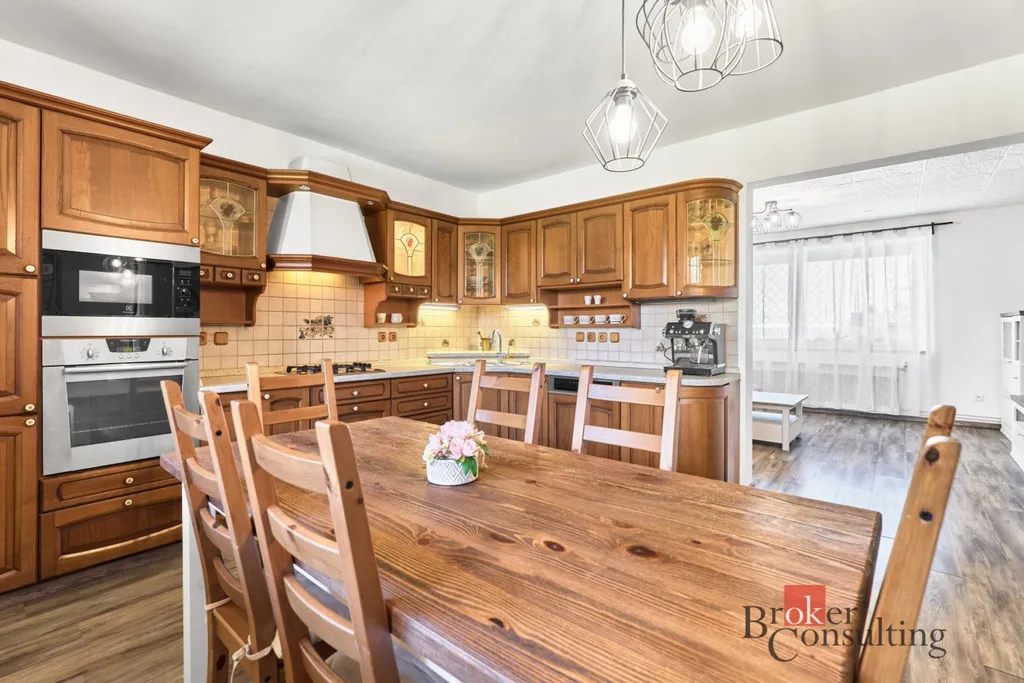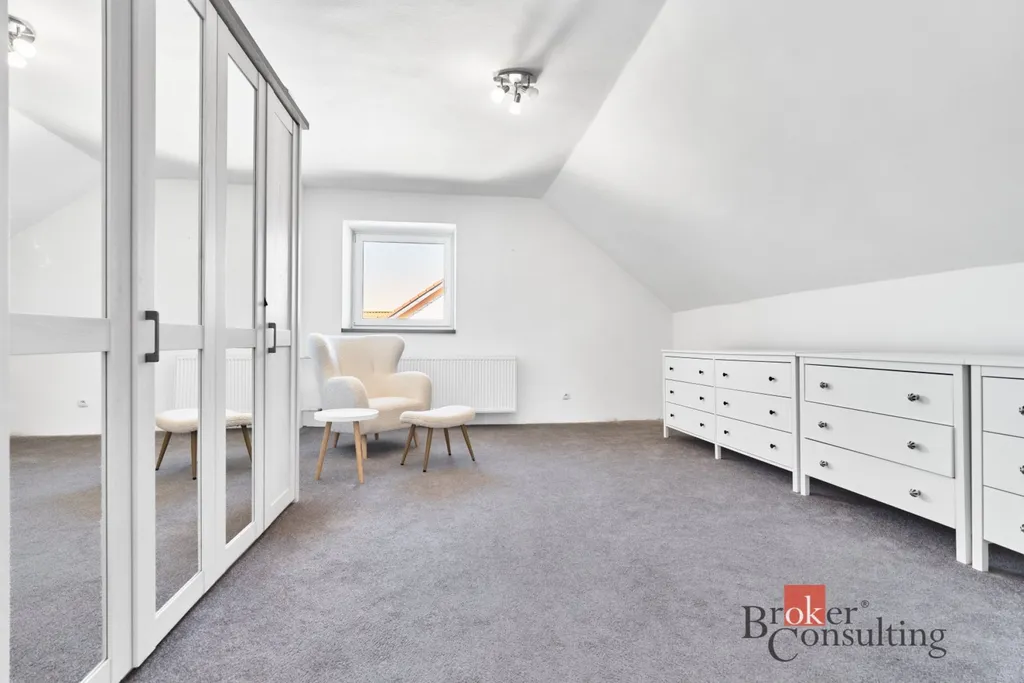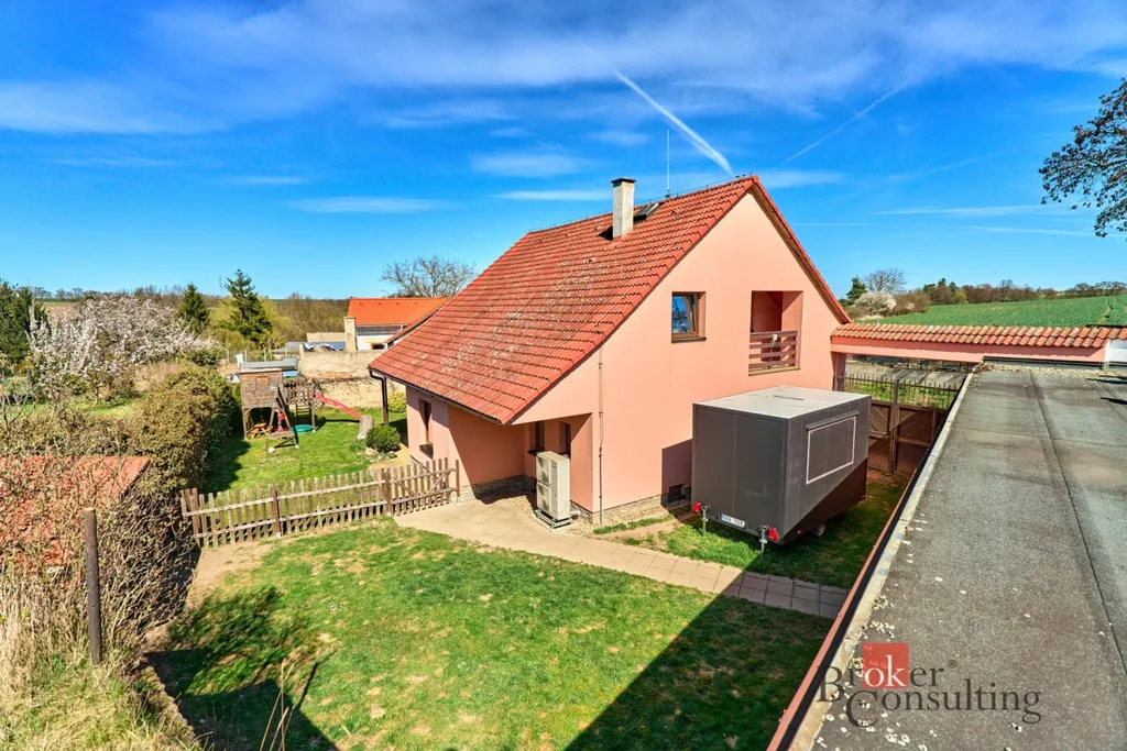 Vytápění je řešeno moderním tepelným čerpadlem vzduch–voda značky Toshiba, což výrazně snižuje provozní náklady domu. Velkým benefitem je kuchyňská linka na míru včetně spotřebičů, přičemž dům může zůstat kompletně vybavený dle dohody.