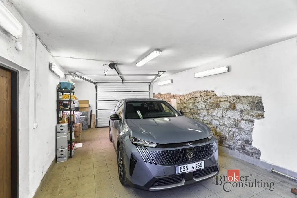 Součástí nemovitosti je garáž pro dvě auta, na kterou navazuje kryté posezení ideální pro relaxaci a trávení volného času. Vedle garáže další možnost parkovacího otevřeného stání.